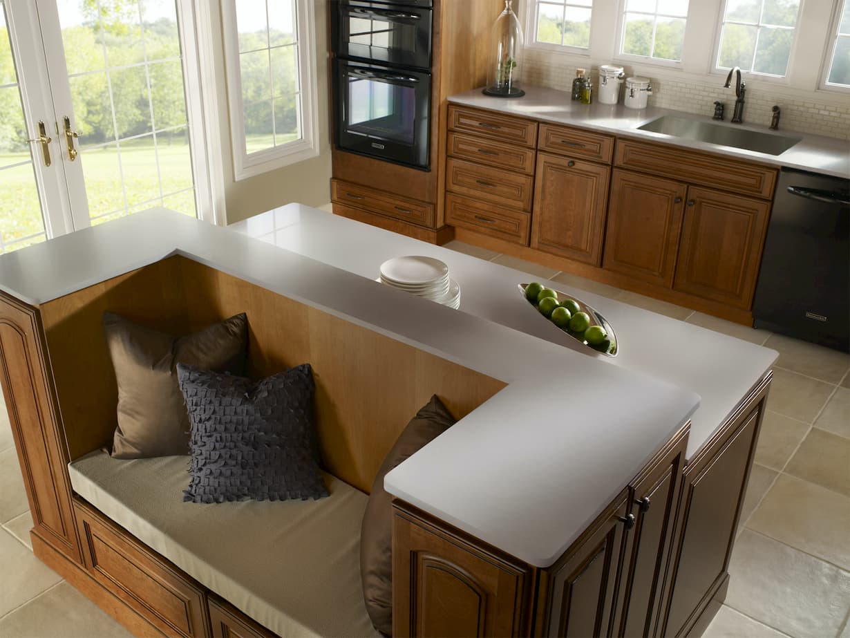 Corian® Quartz no es poroso y es resistente a las manchas, por lo que no necesita sellar su superficie. El acabado es pulido.